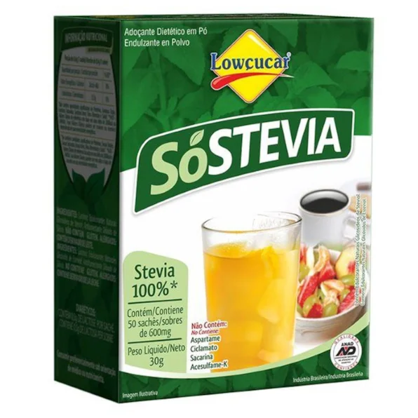 O Adoçante Lowçucar SóStevia é composto pelo edulcotante natural extraído das folhas da Stevia rebaudiana bertoni, conhecida como Stevia – Indicado a todos que precisam restringir ou substituir o açúcar por uma opção saudável e menos calórica – Aprovado pela ANAD.