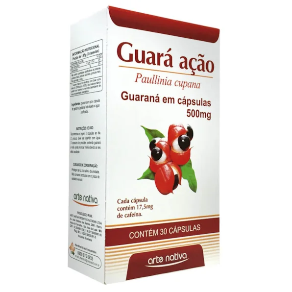 Guaraná Ação Arte Nativa 500mg c/30 Cápsulas – Guaraná é o nome dado pelos Índios, á semente da árvore Paullinia Cupana – Originário da Amazônia, suas propriedades energéticas e tônicas já eram conhecidas há bastante tempo por estes povos – Pesquisas confirmam que a semente moída e torrada do guaraná é uma grande fonte de energia, sendo muito útil para acabar com a sensação de fadiga causada pelo esforço intelectual e físico.