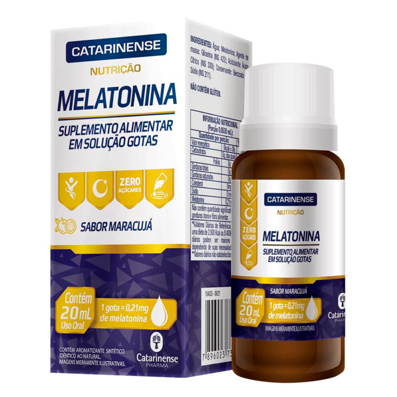 – Auxiliar na suplementação alimentar de melatonina. Apresenta-se em embalagem com 20ml de conteúdo de sabor maracujá, sendo um produto dedicado ao uso adulto.