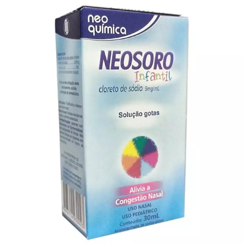 Neosoro Infantil gotas descongestionantes, para o alívio da congestão nasal.Neosoro InfantilO Neosoro Infantil é um anti-séptico nasal apropriado para bebês e crianças, age como descongestionante e facilita a respiração durante o sono e na amamentação. Não é tóxico e não causa irritabilidade. Pode ser usado como fluidificante das secreções nasais em casos de resfriados, rinites e de quaisquer outras condições associadas ao ressecamento da mucosa nasal, como nos ambientes fechados, em casos de baixa umidade do ar e de poluição. Não contém substância vasoconstritora, não causa dependência, hiperemia reacional nem conduz a risco de rinites medicamentosas. Sua ação é rápida e eficaz, tranqüilizando tanto o bebê quanto os pais!